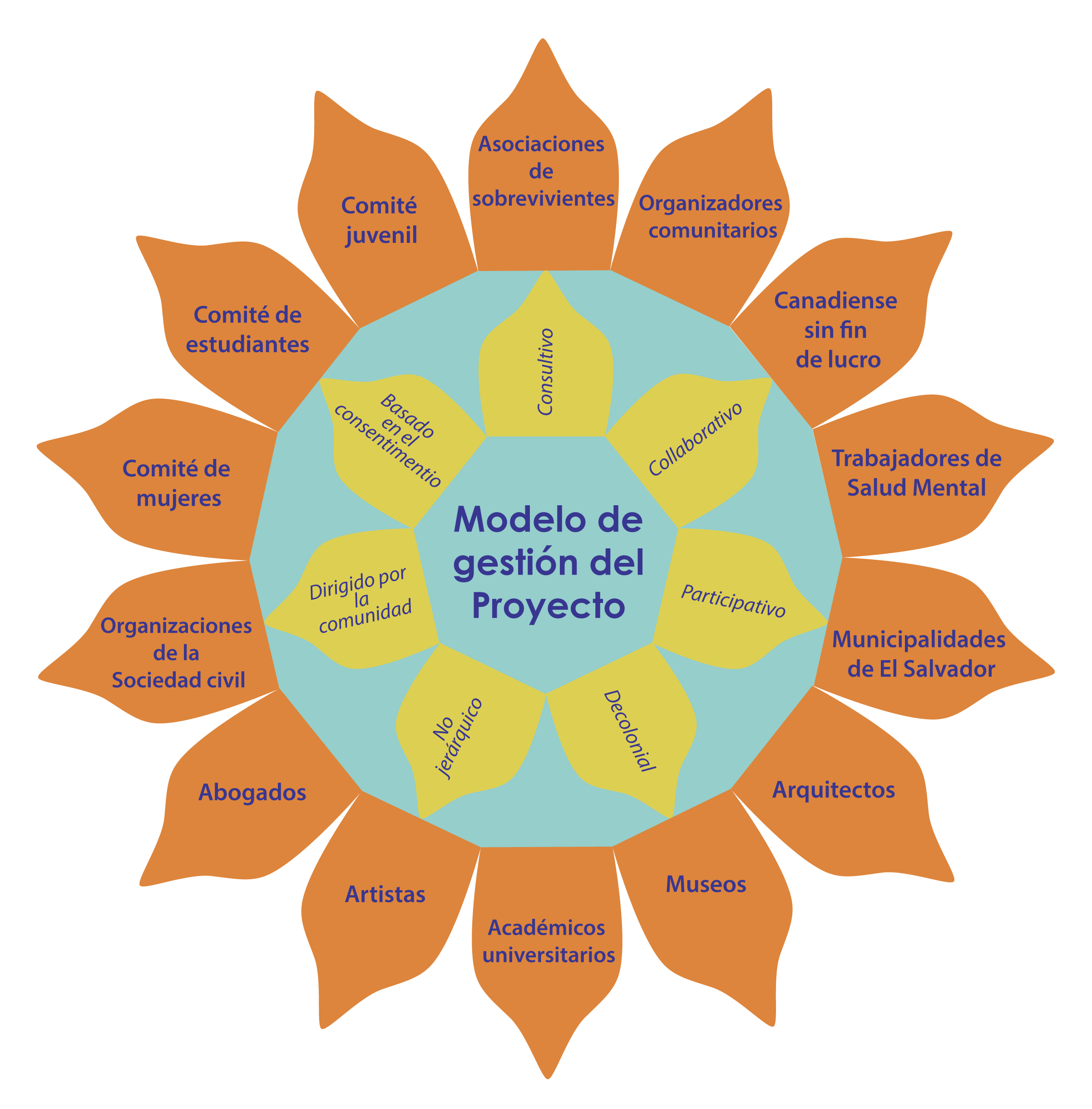 Enfoque holístico: el enfoque para documentar la historia de la guerra civil salvadoreña es holístico y sensible al trauma. El equipo se esfuerza por colaborar de maneras innovadoras y con sensibilidad a las contingencias psicosociales, a través de disciplinas académicas tradicionales, de sectores, de comunidades y de fronteras.